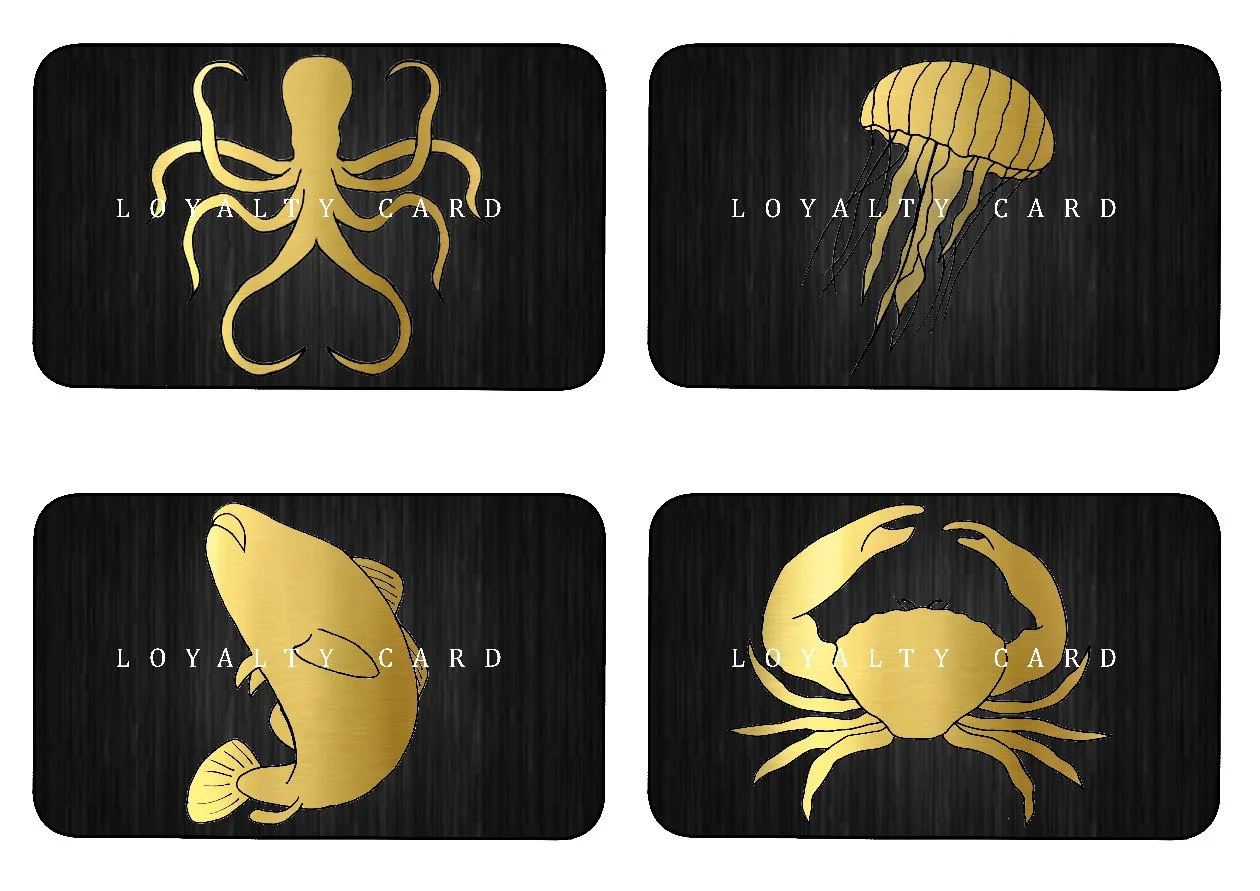 With these various graphic products, I incorporated sea creatures, as typically sea creatures are signified and associated with being a delicacy, portraying the restaurant as very posh, elegant, and professional.